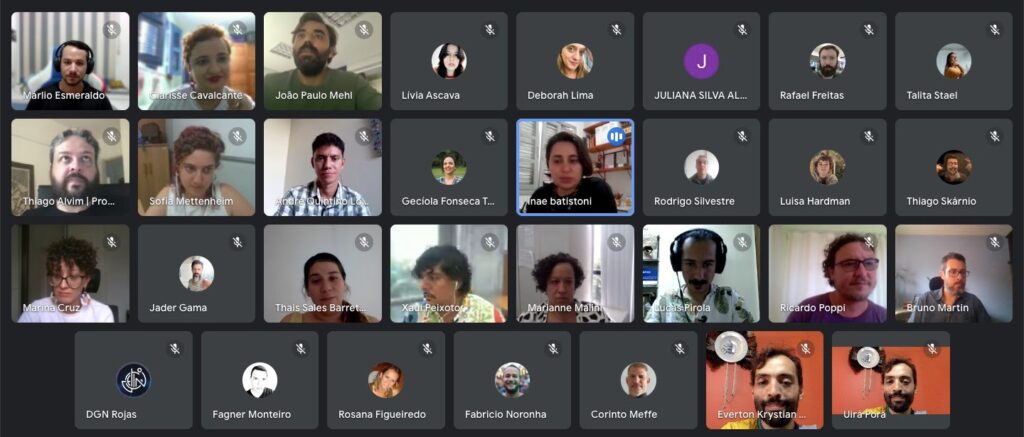Mediado por Clarisse Cavalcante e Márlio Esmeraldo, do Movimento Felicilab, a reunião contou com a participação de importantes instituições e membros da comunidade como Uirá Porã, do Movimento Felicilab; Inaê Batistoni, do Instituto Lidas; Gecíola Fonseca, da Secult-CE, Lívia Ascava e Bruno Martin, da Hacklab/; André Quintino, consultor do Ministério da Cultura (MinC); Sofia Mettenheim e Xauí Peixoto, do MinC; Fabrício Noronha, da Secretaria da Cultura do ES e do Fórum de Secretários da Cultura, Luisa Hardman, Pronac | Funarte; Diego Rojas e Corinto Meffe, da FederaSol; Deborah Rebello Lima, da UFPR; Jader Gama, da Nômade; Fagner Monteiro, da Secretaria Estadual da Cultura do Pará; Thiago Alvim, do Prosas; Flávio Tavares, da Secretaria Nacional das Periferias | Ministério das Cidades; Luisa Cela, da Secult-CE e Consórcio Nordeste e Lucas Pirola do Instituto Mutirão e Movimento Felicilab.
